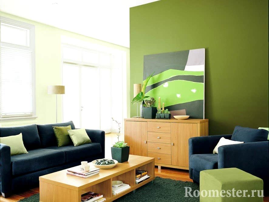 Il est important d'utiliser la couleur aristocratique à dessein, pour la combiner avec d'autres nuances naturelles. Puisque l'atmosphère générale de la pièce dépendra de l'harmonie de l'interaction avec les couleurs partenaires. Lors du choix d'une gamme, vous devez vous baser sur le but de la pièce. Selon l'endroit où vous prévoyez de changer le décor - dans la chambre de bébé ou la chambre à coucher - le dégradé changera: du jaune-vert en combinaison avec la couleur du ciel, au gris-vert - avec des feuilles fanées. Le choix est fait individuellement, mais avant de terminer le travail, il vaut la peine d'explorer les combinaisons de couleurs les plus optimales, ainsi que d'écouter l'avis de designers professionnels.