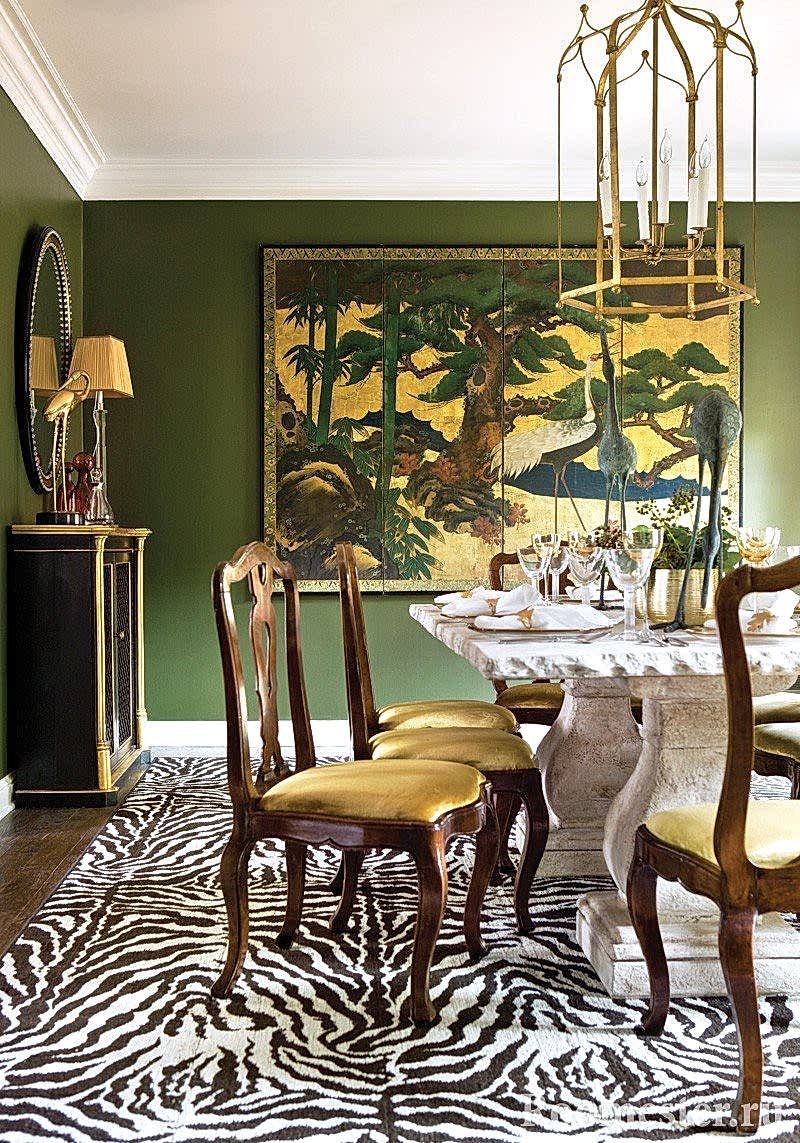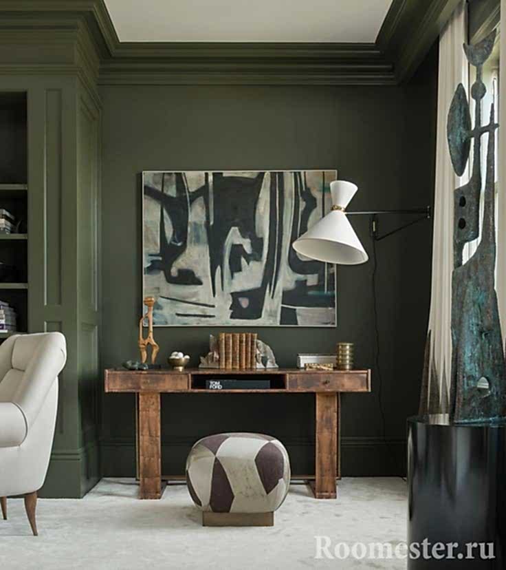 La monumentalité conservatrice est facilement obtenue en utilisant des meubles sombres qui peuvent fournir le contraste nécessaire avec les murs d'olivier. Les adeptes de cette interaction sont des experts des classiques stricts et du style art déco;