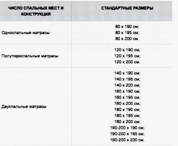 Il est nécessaire d'exclure toutes les nuances qui peuvent interférer avec un bon repos - un lit inconfortable, une literie de mauvaise qualité. Mais le plus important est de choisir le bon matelas. Ses caractéristiques devraient convenir à vos besoins. Il est nécessaire de prendre en compte les caractéristiques de conception du produit, la fabrication, le degré de rigidité et, surtout, la taille des matelas. Pour comprendre laquelle vous convient le mieux, nous vous proposons de vous familiariser avec la variété des dimensions de ces produits.