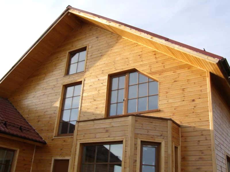 Les maisons construites en bois ont l'air noble, mais le coût des structures est assez élevé. Pour économiser sur la construction, vous pouvez utiliser du bois d'œuvre, qui imite la surface des billes traitées et des planches collées. Ils peuvent être utilisés pour le revêtement de briques, de béton, de parpaings et même de murs en bois. Ils décoreront non seulement la base, mais serviront également de protection supplémentaire contre diverses influences.