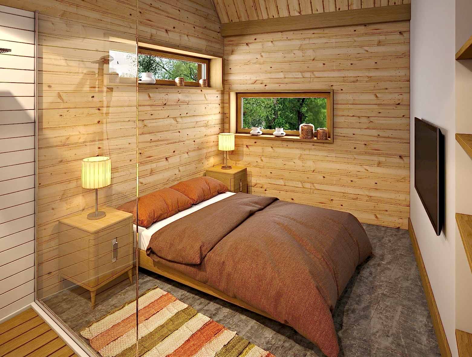 Les substances libérées par le bois ont des propriétés désinfectantes. Le matériau purifie constamment l'air de la pièce, ce qui lui permet d'être utilisé dans la pépinière et la chambre. L'arbre a un design noble qui donnera de l'originalité à tout intérieur. En raison de la complexité du traitement, les lamelles sont rarement vendues. De nombreuses entreprises fabriquent du bois de cèdre uniquement sur commande.