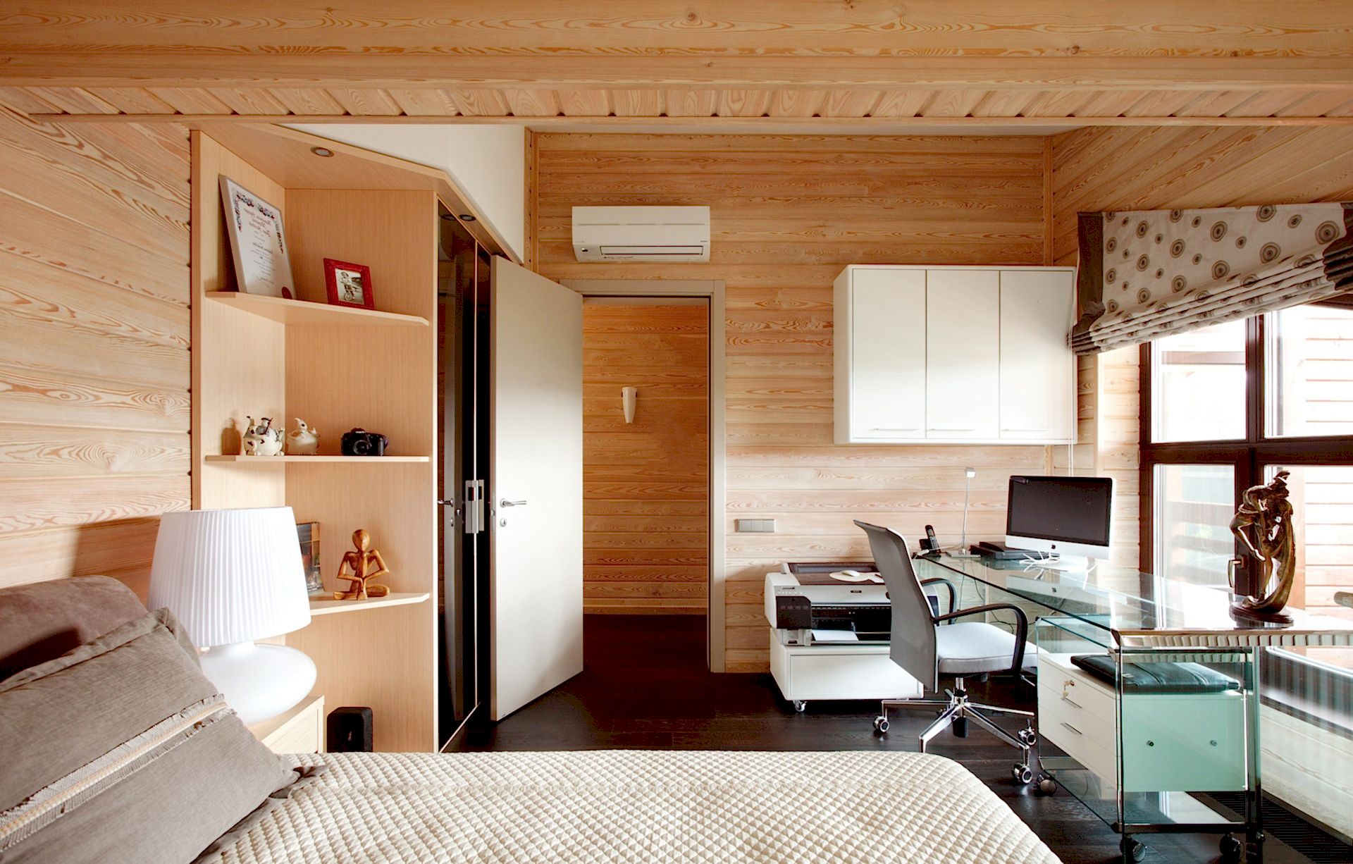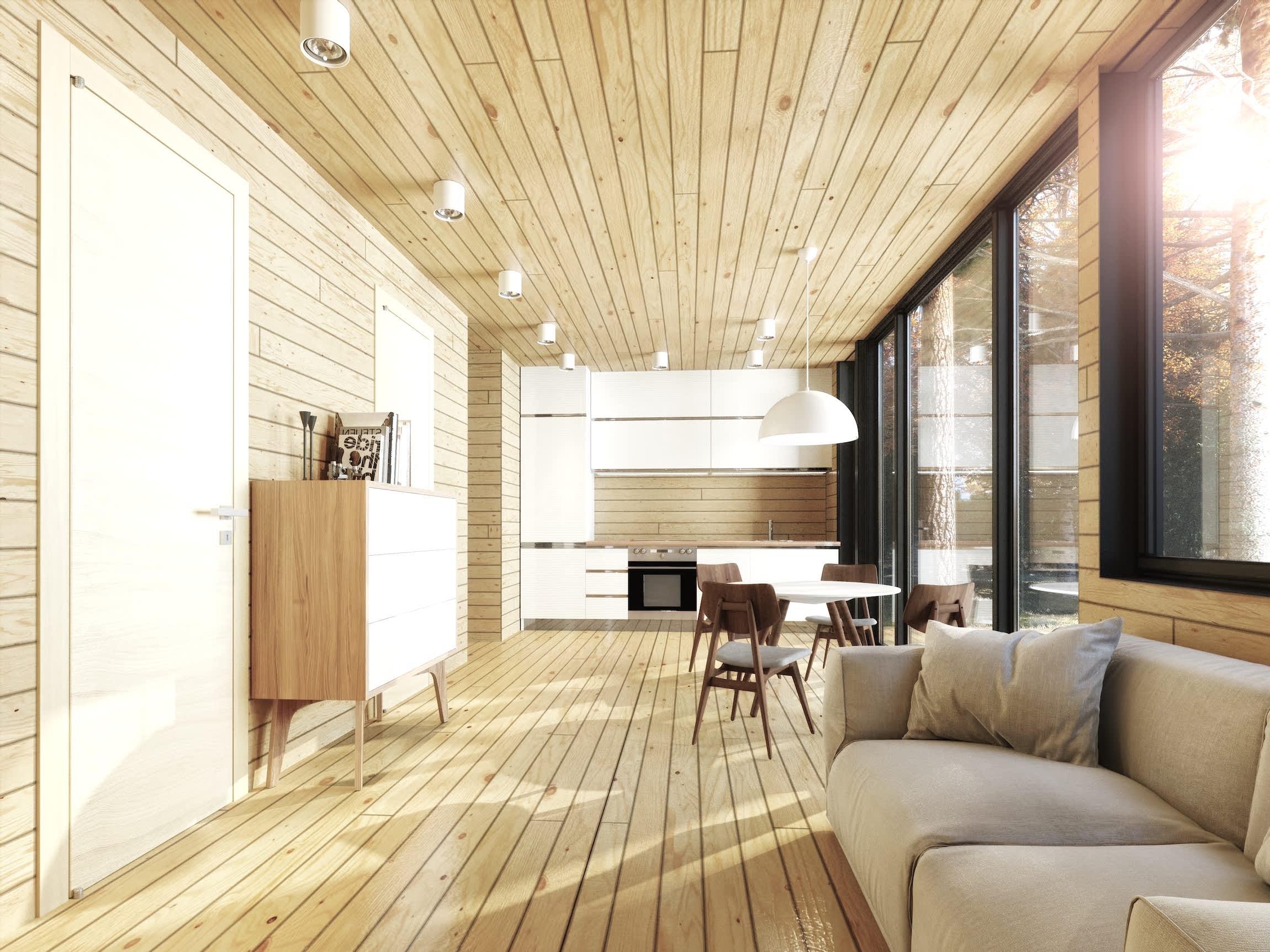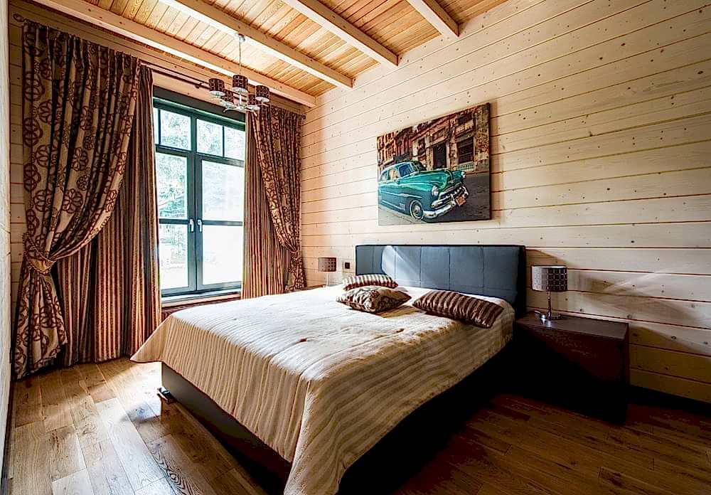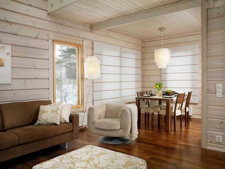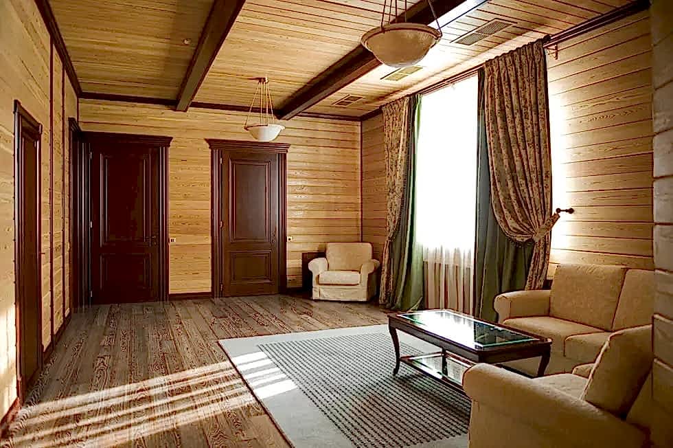 Le matériau de construction est fabriqué à partir de différents types de bois, il répond donc à toutes les exigences environnementales. Il donne l'impression que le bâtiment a été construit à partir d'une seule poutre traitée avec une texture magnifique, offre une atmosphère saine, augmente le confort et le confort de la vie. Il existe plusieurs méthodes pour décorer un espace avec des panneaux en bois: