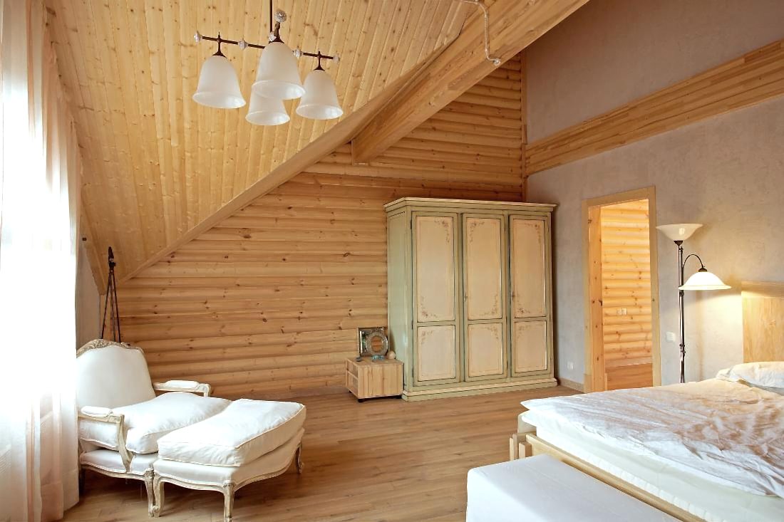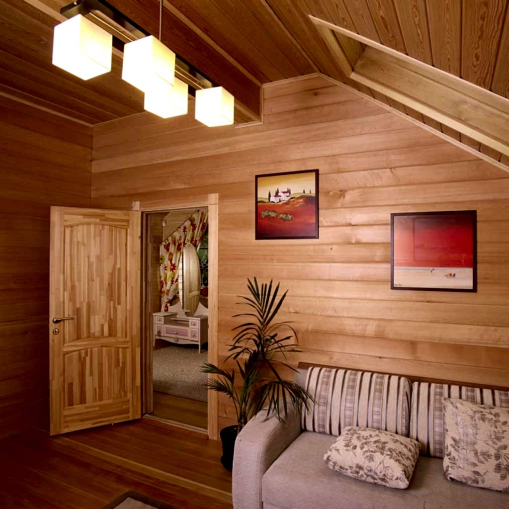 L'imitation d'une barre est appliquée à la finition des murs et des plafonds. Il s'agit d'un matériau vivant texturé, qui présente un certain nombre d'avantages. Il vous permet de créer la sensation d'une maison en bois à l'intérieur d'une ou de toutes les pièces. Le bois laisse respirer le revêtement; certaines variétés purifient généralement l'air. En utilisant le revêtement, vous pouvez créer un design unique, souligner un certain style.
