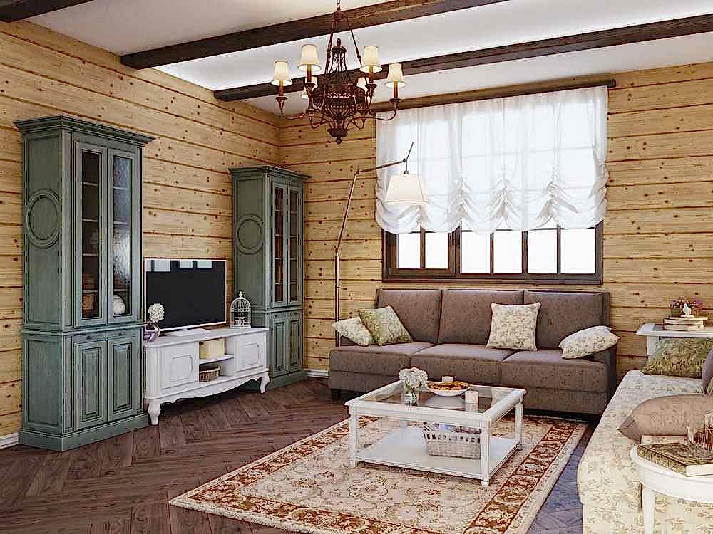 Dans la cuisine, en utilisant l'imitation de la poutre, vous pouvez recouvrir les murs et le tablier de la cuisine, cependant, un traitement supplémentaire du bois sera nécessaire. Différentes couleurs accentueront la sévérité ou la chaleur de l'espace. Dans le salon, il suffit de faire une surface d'accent, ou d'aménager une certaine zone, vous pouvez couvrir complètement toutes les cloisons. Tout dépend des préférences des propriétaires, de la conception du style.