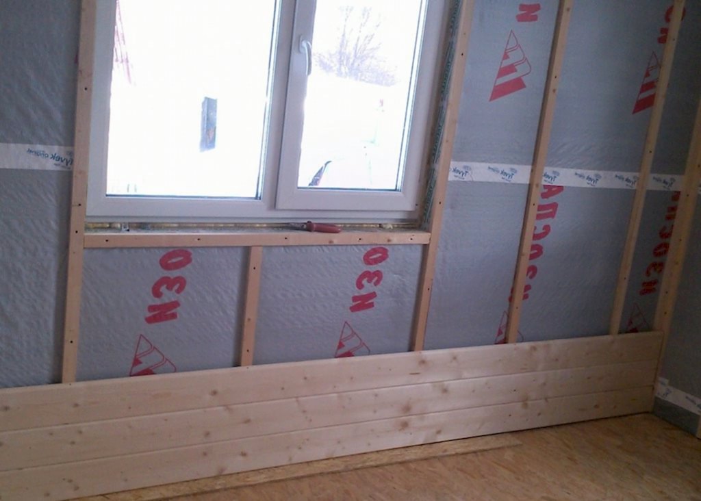 Les principaux éléments de support sont les barres. Avant la fixation, toutes les pièces en bois sont traitées avec des antiseptiques et des retardateurs de flamme. Les travaux d'installation commencent par le marquage. À l'aide d'un niveau, d'un fil à plomb et d'un fil de nylon, des marques sont fixées. Si le mur est inégal, pour installer le cadre, vous devrez utiliser des revêtements ou des substrats de sorte que les bords extérieurs des lattes forment un seul plan vertical uniforme.